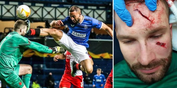Glasgow Rangers Slavia Prag Torwart Nach Kung Fu Tritt Blutuberstromt Welt