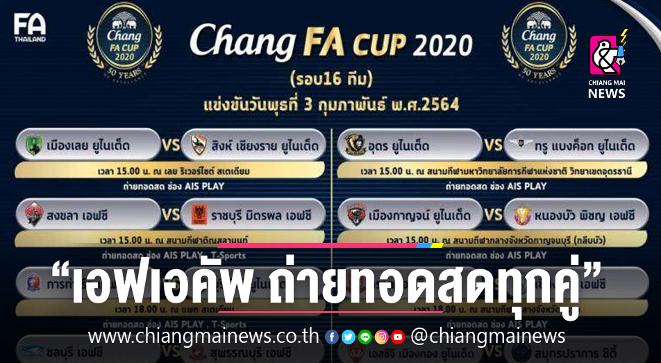 คอบอลเฮ ชมสดครบท กค เอฟเอค พ รอบ 16 ท ม พ ธท 3กพ Chiang Mai News