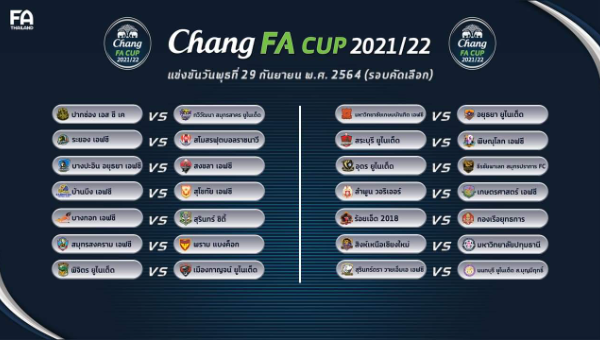 จบสลาก ชาง เอฟเอ คพ 2020 ครบรอบ 50 ป บอลถวยนอกเอาทประวตศาสตร ลง. ฟตบอลชาง เอฟเอ คพ ฤดกาล 202122 ได 32 ทมผานเขารอบตอไปเปนทเรยบรอยโดยผลในรอบ 64 ทมสดทาย มดงน. อนง เงนรางวล ฟตบอลรายการ ชาง เอฟเอ คพ 202122 มดงน.