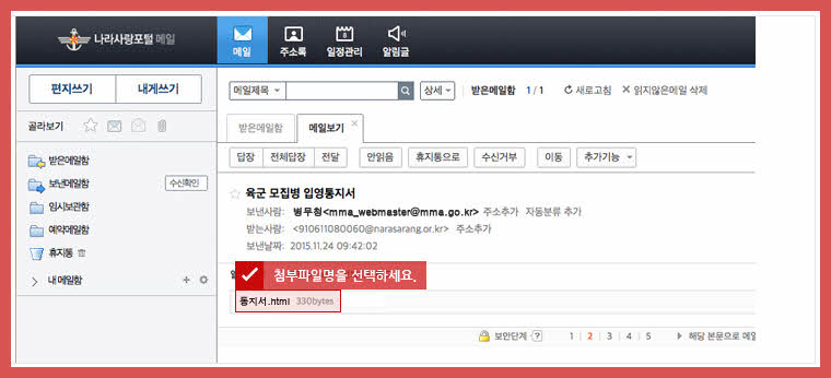 입영통지서가 발부되었다면 이렇게 입영통지서 병무청이라는 제목의 이메일이 와 있을겁니다. 느리고 약간 불편한 거 말곤 저는. 여기를 클릭을 해주시면 됩니다.