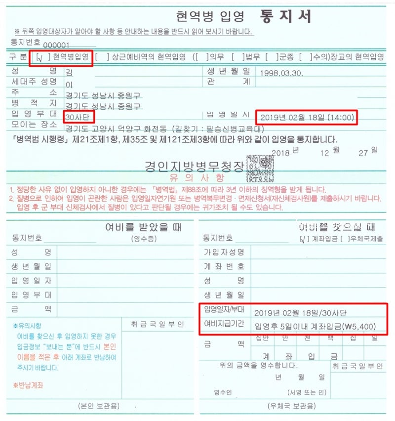 영장 아니라 입영 통지서 입니다. 존재하지 않는 이미지입니다. 한참 남은것 같은 날짜도 금방금방 다가와서 내일이면 군에 들어가게 되는데요 꼭 챙겨가야할 것들중 입영통지서 출력하는 방법을 정리해 보았어요.