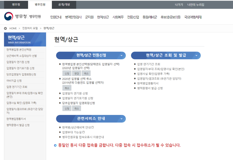 3대가족 모두 현역복무 이행. 그래도 군대는 가야 하나봅니다. 포털에서 검색을 하면 위와 같이 들어가게 되는데요 여기서 병무민원포털 카테고리가 있을 것입니다.